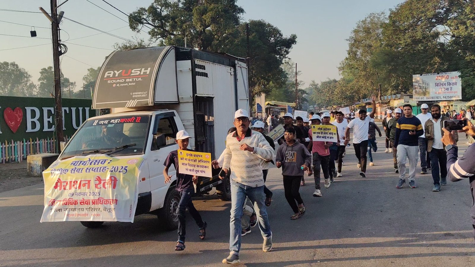 मुख्य जिला एवं सत्र न्यायाधीश तथा अध्यक्ष, जिला विधिक सेवा प्राधिकरण बैतूल, श्री दिनेश चन्द्र शुक्ला के मार्गदर्शन में न्यायोत्सव : विधिक सेवा सप्ताह का शुभारंभ आज मैराथन दौड़ से हुआ। विशेष अतिथि न्यायाधीश श्रीमती दिव्यांगिनी जोशी पांडे ने हरी झंडी दिखाकर दौड़ का शुभारंभ किया।