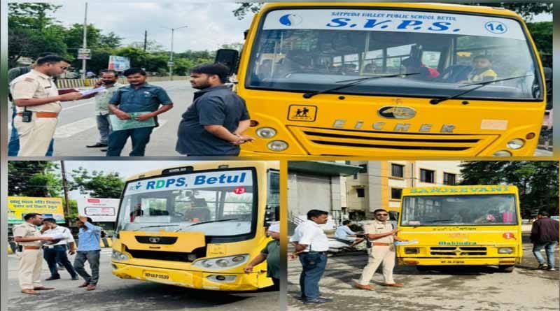 बैतूल।थाना यातायात जिला बैतूल प्रभारी द्वारा कप्तान के निर्देश पर की स्कूल बसों पर कारवाही बता दे पुलिस अधीक्षक निश्चल झारिया द्वारा काईम मीटिंग में सभी थाना प्रभारियों को निर्देशित किया गया था की स्कूलों / कॉलेज के छात्र-छात्राओं को परिवहन कर रहे वाहनों में सुरक्षा के पर्याप्त इंतजाम है कि नहीं समस्त वाहनों में फिटनेस परमिट है या नही इसमे सघन जांच कि जाये और उल्लघंनकर्ताओ के विरूध्द सक्त कार्यवही की जाये उक्त निर्देशो का पालन करते हुए यातायात थाना बैतूल का स्टाफ ने प्रातः 8 बजे से स्कूल / कॉलेज की बसों की सघन चेकिंग करना शुरू कर दी जिसमे 20 बसो को चेक किया गया । चेकिंग के दौरान एक बस बिना बीमा के संचालन पाये जाने पर 5000 रूपये जुर्माना किया गया साथ ही एक बस बिना परमिट के कॉलेज के छात्रों को परिवहन करते पाई जाने पर 10000 रूपये का जुर्माना किया गया । अन्य दो बसो मे अग्नि शमन यंत्र नही पाये जाने पर 500-500 रूपये का जुर्माना किया गया। साथ ही स्कूल / कॉलेज प्रबंधको को भविष्य में मोटर अधिनियम के उल्लघंन में बस संचालन करते पाये जाने पर राक्त कार्यवाही की हिदायत दी गई। थान प्रभारी
