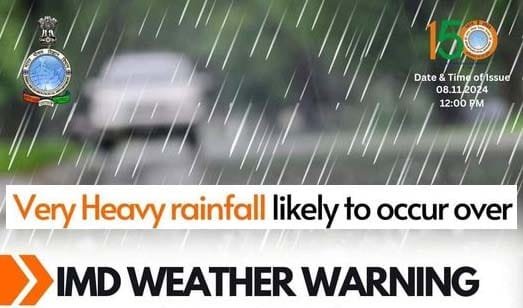केरल और माहे, तमिलनाडु, पुडुचेरी और कराईकल में आज बहुत भारी बारिश होने की संभावना है।