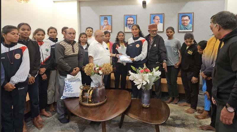 बैतूल। बैतूल जिले के लिए यह गौरव की बात है कि जिले के खेल इतिहास में पहली बार महिला कबड्डी टीम का चयन राज्य स्तरीय कबड्डी प्रतियोगिता के लिए हुआ है। इस टीम की सभी खिलाड़ी बेटियाॅ जनजातीय समाज की है। मध्यप्रदेश कबड्डी संघ द्वारा आयोजित राज्य स्तरीय कबड्डी प्रतियोगिता में शामिल होनें के लिए जिले की कबड्डी टीम की खिलाड़ियों को बैतूल विधायक हेमंत खण्डेलवाल नें अपने निवास पर शुभकामनाएं देकर जबलपुर के लिए रवाना किया। बैतूल विधायक श्री खण्डेलवाल नें राज्य स्तरीय प्रतियोगिता में चयनित हुई जिले की महिला कबड्डी टीम की खिलाड़ियों के लिए किट,आवागमन एवं भोजन की व्यवस्था कर हर संभव मदद का भरोसा दिलाया। इस दौरान जिल कबड्डी संघ के सचिव नितेश राजपूत,समन्वयक राधेलाल बनखेडे़,वरिष्ठ खिलाड़ी संघ के अध्यक्ष संयोजक रमेश भाटिया‘‘काका’’ ,वरिष्ठ खिलाड़ी-समाजसेवी हेमंतचन्द्र बबलू दुबे,टीम की कप्तान कुमारी सितारा कुमरे सहित खिलाड़ी मौजूद थे।