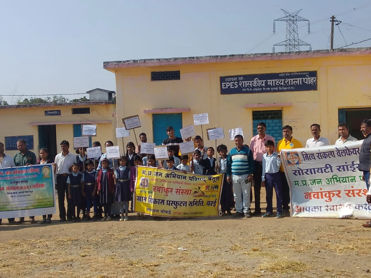 सांईखेड़ा :- मंगलवार को प्रातः 11 बजे से भारतीय संविधान दिवस के शुभ अवसर पर विकास खंड मुलताई मे ब्लाक समन्वयक श्रीमती जयप्रकाशी परते के मार्गदर्शन में सेक्टर क्रमांक 1 के ग्राम सांईखेड़ा एवं ग्राम पोहर में नवांकुर संस्था नित्य संकल्प वेलफेयर सोसायटी सांईखेड़ा, नवांकुर संस्था ग्राम विकास प्रस्फुटन समिति बरई , नवांकुर संस्था सजग वेलफेयर सोसायटी सांडिया तथा नवांकुर संस्था ग्राम विकास प्रस्फुटन समिति डहूआ एवं CMLDP के परामर्शदाता एवं छात्रों के सामूहिक तत्वावधान मे गतिविधि का आयोजन किया गया। कार्यक्रम का शुभारंभ ग्राम पोहर के हनुमान मंदिर मे सफाई कर स्वच्छता की सपथ दिलाई गई।