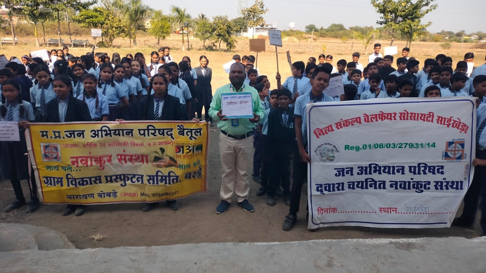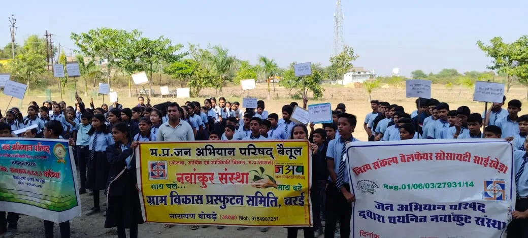ग्राम सांईखेड़ा में स्कूल के छात्रों के छात्रों के माध्यम से रैली निकालकर स्वच्छता एवं नशामुक्ति का संदेश दिया गया। भारतीय संविधान दिवस की जानकारी देते हुए संविधान की शपथ दिलाई गई। तत्पश्चात जल संरक्षण अभियान के तहत एक छोटी नदी पर बोरी बंधान कर ग्रामीणों को जल संरक्षण का संदेश दिया गया। कार्यक्रम में ब्लाक समन्वयक श्रीमती जयप्रकाशी परते, नवांकुर संस्था से नारायण पवार, कुंडलीक कालेलकर, राहुल देशमुख, उमेश गाकरे CMLDP के परामर्शदाता सुदामा पाठेकर, बाबूराव ठाकरे, राजू आठनेरे, पंकज पवार छात्र छात्राएं एवं ग्रामीणजन उपस्थित रहे।