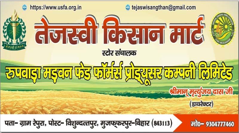 तेजस्वी किसान मार्ट जो कि यूनिवर्सल सोनांचळ फार्मर एसोसिएशन व तेजस्वी संगठन न्यास के आपसी सहयोग से संचालित प्रतिष्ठान है। जिसका उद्देश्य किसानों व किसान उत्पादक संगठन (एफपीओ) के उत्थान एवं आपसी व्यापार हेतु कार्यरत है। जिससे किसानों को आर्थिक मजबूत बनाने में मदद मिल सके। तेजस्वी किसान मार्ट का मूल उद्देश्य उत्पादक से उपभोक्ता के सफर में एफपीओ की प्रमुख भागेदारी को सुनिश्चित करना जिससे उत्पादक (किसान) को उसके उत्पाद का उचित मूल्य और उपभोक्ता को गुणवत्तापूर्ण उत्पाद उचित मूल्य पर उपलब्ध कराया जा सके। तेजस्वी किसान मार्ट द्वारा आज देश के 12 राज्यो (उत्तर प्रदेश, बिहार, मध्यप्रदेश, पश्चिम बंगाल, असम, केरल, महाराष्ट्र, झारखंड, गुजरात, दिल्ली, छत्तीसगढ़, आंध्रप्रदेश इत्यादि) में किसान उत्पादक कंपनियों को निगरानी समिति का सदस्य बनाया गया है। और एफपीओ से एफपीओ आपसी व्यापार को बढ़ावा दिया जा सके। इसी क्रम में तेजस्वी किसान मार्ट द्वारा देश का प्रथम स्टोर बिहार प्रदेश के मुज़्ज़फ़रपुर जनपद में 3 दिसंबर को सुभारम्भ होना सुनिश्चित किया गया है। जो की देश के एफपीओ के लिए मिसाल के रूप में काम करेगा। देश का पहला जनपद मुज़्ज़फ़रपुर होगा जहां एक स्थान पर 200 से अधिक एफपीओ द्वारा उत्पादित उत्पाद एक स्टोर पर उपलब्ध होगा। इस कार्यक्रम में 12 प्रदेश के एफपीओ प्रतिनिधि अपनी सहभागिता करेंगे। तेजस्वी किसान मार्ट के स्टोर संचालन हेतु एक संचालन समिति का गठन बिहार प्रदेश के प्रभारी श्रीमान देवशंकर (गुड्डू) सिंह जी निर्देशानुसार संचालन समिति के प्रमुख श्रीमान महंत मृत्युंजय दास जी निर्देशक रूपवाड़ा मडवन फेड फार्मर प्रोड्यूसर कम्पनी लिमिटेड द्वारा संचालन समिति की न्युक्ति की गई जो निम्नवत है। श्रीमान सुनील कुमार सुमन जी- बुढ़िया मईया फेड फार्मर प्रोड्यूसर कंपनी बैशाली, श्रीमान भाग्यनारायन राय जी एवं श्रीमान उमेश राय जी मड़वन फार्मर प्रोड्यूसर कंपनी, श्रीमान हर्षवर्द्धन मिश्र युवा खेतिहर फार्मर प्रोड्यूसर कंपनी, विशेष आमंत्रित श्रीमान रमेश कुमार सिंह जी इत्यादि 5 सदस्यी संचालन समिति का गठन संचालन समिति के प्रमुख द्वारा किया गया।
