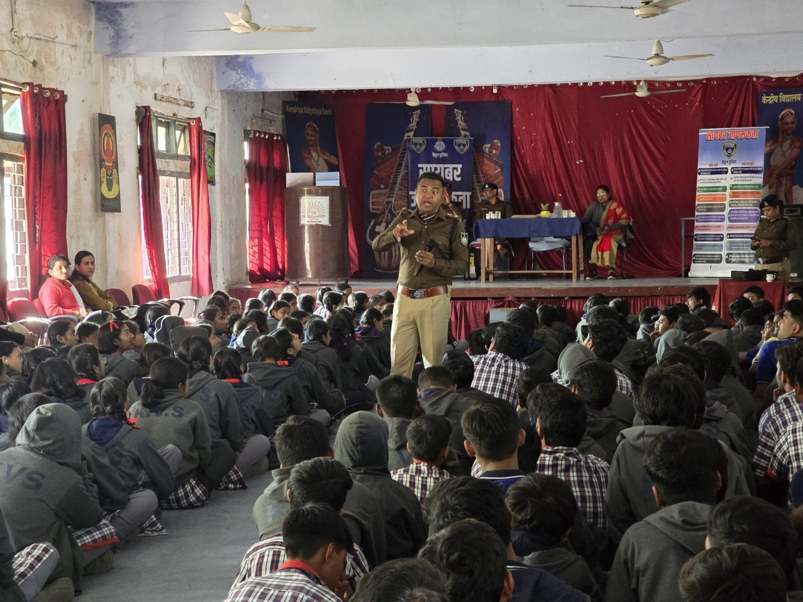 इस क्रम में पुलिस अधीक्षक बैतूल श्री निश्चल एन. झारिया ने थाना प्रभारी सारणी निरीक्षक देवकरण डेहरिया के साथ सारणी थाना क्षेत्र के केंद्रीय विद्यालय में कक्षा 9वीं से 12वीं के छात्र-छात्राओं और शिक्षकों के साथ विशेष सत्र का आयोजन किया।