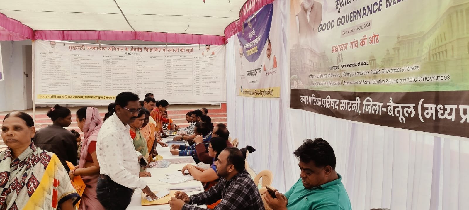 सारनी। केंद्र एवं राज्य सरकार की हितग्राहीमूलक योजनाओं को पात्र हितग्राहियों तक पहुंचाने के लिए सुशासन सप्ताह शासन गांव की ओर अभियान के तहत नगर पालिका परिषद सारनी क्षेत्र में शिविरों का आयोजन किया जा रहा है। सोमवार 23 दिसंबर को वार्ड क्र. 5 में शिविर का आयोजन किया गया। शिविर में विभिन्न विभागों के अधिकारियों की उपस्थिति में 48 आवेदन प्राप्त हुए। इनमें से 28 आवेदनों का मौके पर निराकरण किया गया।