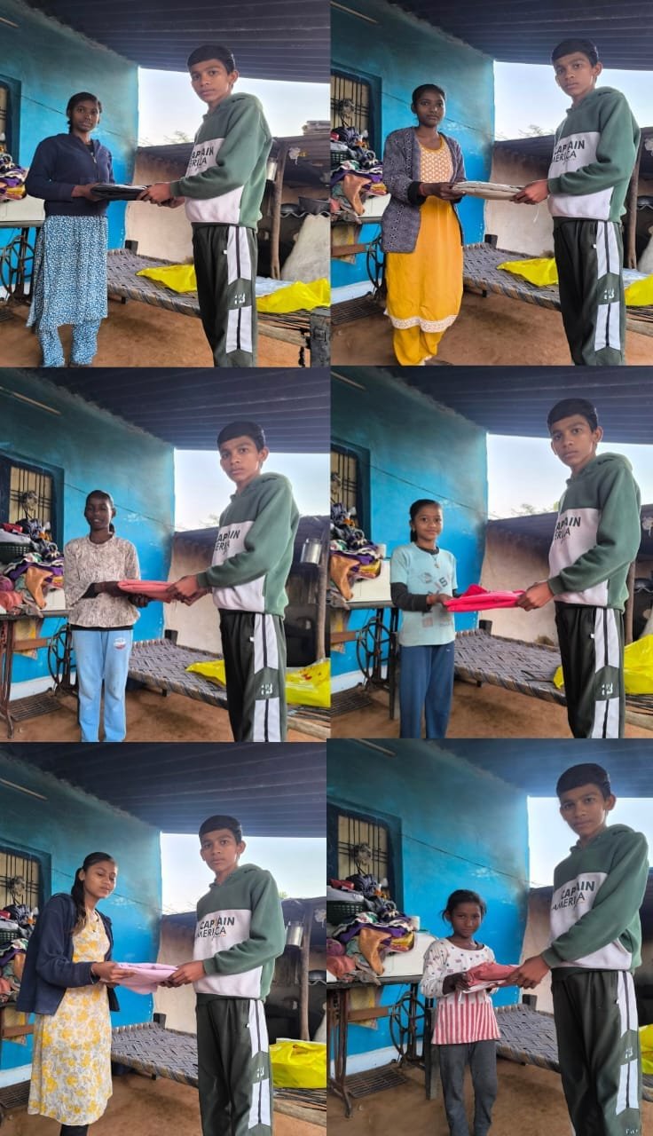 बेटियों को वस्त्र दान कर सम्मानित करते हुए हमारा बेटा प्रिंस तोमर