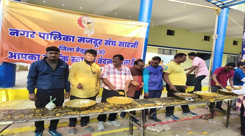 सारनी। श्री बाबा मठारदेव मेले में नगर पालिका मजदूर संघ द्वारा विशाल भंडारे का आयोजन किया गया लगभग 12000 भक्त गणों ने प्रसाद गृहण किया भंडारे का शुभआरंभ विधिवत बाबा मठारदेव का पूजन भोग पश्चात न पा अध्यक किशोर बरदे, मुख्य नगर पालिका अधिकारी सी के मेश्राम, के के भावसार जिला अध्यक्ष नगर पालिका मजदूर संघ, हरिओम कुशवाह नगरीय निकाय प्रभारी मध्य प्रदेश,दीपक वर्मा मध्य प्रदेश तकनीकी संघ,के द्वारा किया गया , कार्यक्रम में मजदूर संघ के कार्यकर्ता, मिथुन नकवाल,अमित नकवाल,रवि पथरोड, संतोष, अक्षय जोशी,दिलीप भालेराव, गुणवंत हुरमाडे,कमलेश पटेल, देवेंद्र भोरपी,संतोष कज़ोड़,रवि नकवाल, प्रमोद बेसवाल अमला नगर पालिका मजदूर संघ अध्यक्ष
