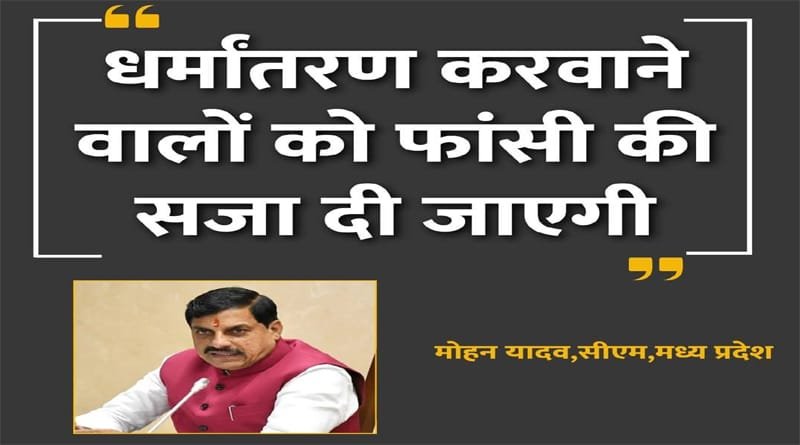 मध्यप्रदेश में धर्मांतरण करवाने वालों को फांसी की सजा दी जाएगी।  मुख्यमंत्री डॉ. मोहन यादव ने इस बात का एलान किया है। मोहन यादव ने कहा, धार्मिक स्वतंत्रता अधिनियम के माध्यम से हम प्रावधान कर रहे हैं कि जो धर्मांतरण करवाएंगे, उनके लिए हमारी सरकार के द्वारा फांसी का प्रावधान किया जा रहा है।