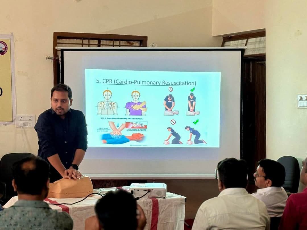 कार्यशाला में कंपनी के बैतूल स्थित सब स्टेशनों एवं अति उच्च दाब संधारण बैतूल के समस्त अधिकारी एवं कर्मचारियों को मेडिकल ऑफिसर डॉ. रानू वर्मा द्वारा व्यवहारिक और उपयोगी प्रशिक्षण दिया गया। कार्यशाला में एमपी ट्रांसको के करीब 30 मेंटेनेंस, ऑपरेटिंग एवं सुरक्षा कर्मियों ने हिस्सा लिया। सीपीआर प्रशिक्षण के लिए उपयोग किए जाने वाले मानव पुतले एवं कुछ वीडियो की सहायता से सीपीआर तकनीक का विस्तृत प्रशिक्षण दिया गया। प्रशिक्षण के दौरान यह सुनिश्चित किया गया कि प्रत्येक प्रतिभागी ने विषय विशेषज्ञ की निगरानी में मानव पुतले पर सीपीआर तकनीक का अभ्यास किया एवं प्राथमिक उपचार संबंधित प्रशिक्षण प्राप्त किया।