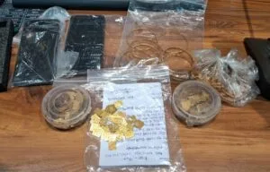 गिरफ्तारी के समय *आरोपियों के कब्जे से नकली सोने की 240 गिन्नियां, नकली सोने के आभूषण 02 मोबाइल फोन बरामद किए गए हैं।*