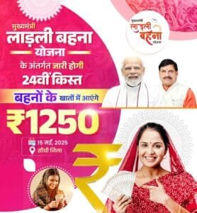 लाड़ली बहना योजना की 24वीं किस्त 15 मई 2025 को जारी की जाएगीबता दें कि सीधी जिले के मंझौली में लाड़ली बहना योजना सम्मेंलन इसी दिन आयोजित किया जाएगा। इस दौरान एमपी के सीएम मोहन यादव लाड़ली बहनों से सीथ संवाद भी करेंगे