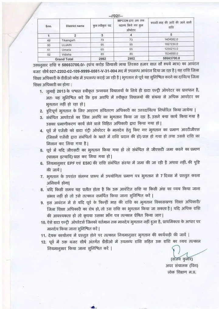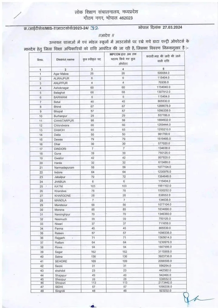 scn news india डाटा एंट्री ऑपरेटर के मानदेय के लिए सभी जिलों के लिए राशि आवंटित March 27, 2024 scnnewsindia.com Scn News Indiaलोक शिक्षण संचालनालय ने आउटसोर्सिंग डाटा एंट्री ऑपरेटर के मानदेय के लिए राशि आवंटित करने के आदेश जारी कर दिए हैं।