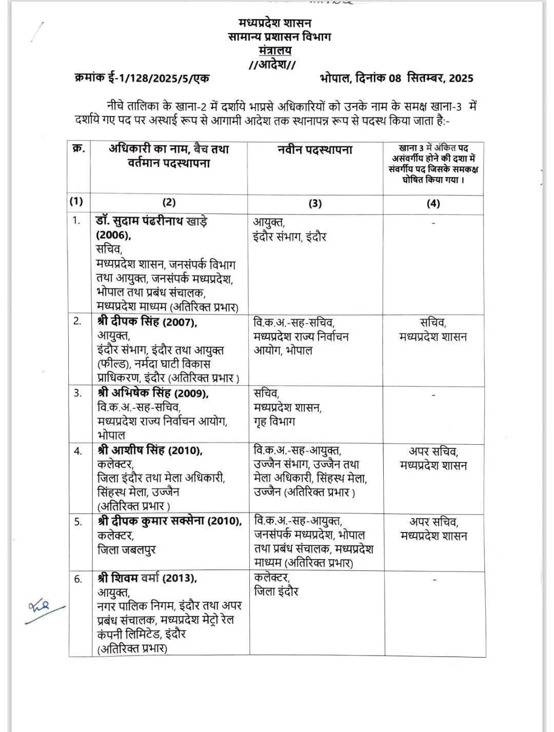 scn news india कलेक्टर सहित दर्जन भर से ज्यादा IAS अफसरों के तबादले September 9, 2025 scnnewsindia.com Scn News Indiaब्यूरो रिपोर्टकलेक्टर सहित दर्जन भर से ज्यादा IAS के हुए तबादले