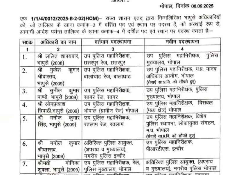 scn news india आईपीएस IPS अधिकारियों के तबादले September 9, 2025 scnnewsindia.com Scn News Indiaये ब्यूरो रिपोर्टआईपीएस IPS अधिकारियों के तबादले