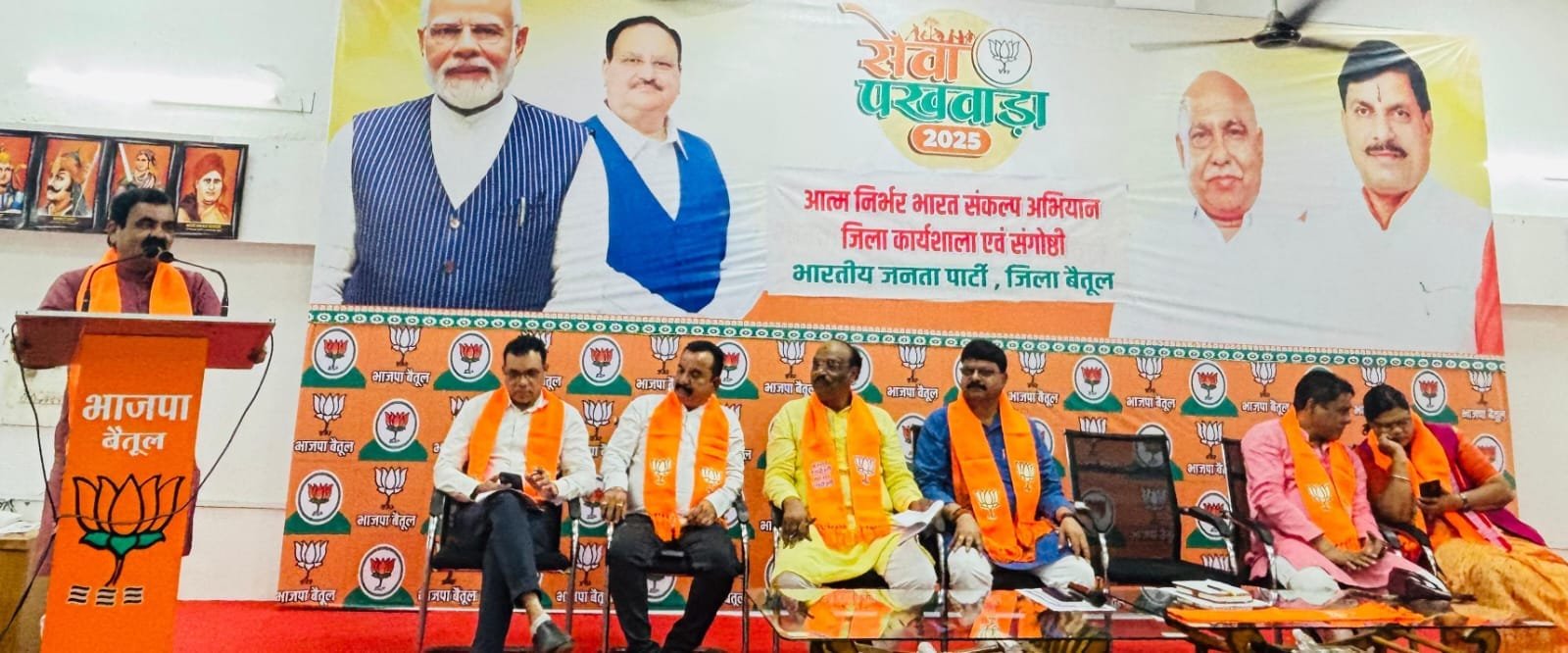 बैतूल । भारतीय जनता पार्टी प्रदेश संगठन के निर्देशानुसार बुधवार को जिला भाजपा कार्यालय विजय भवन में आत्मनिर्भर भारत संकल्प अभियान एवं जीएसटी रिफॉर्म अभियान की कार्यशाला आयोजित की गई। कार्यशाला को संबोधित करते हुए भाजपा जिला संगठन प्रभारी सुजीत जैन मुख्य वक्ता के रूप में कार्यशाला को संबोधित करते हुए कहा कि आत्मनिर्भर भारत संकल्प अभियान कल 25 सितंबर पंडित दीनदयाल उपाध्याय जी की जयंती से प्रारंभ होकर पूर्व प्रधानमंत्री अटल बिहारी वाजपेई जी की जयंती 25 दिसंबर तक चलेगा। जब हम सत्ता में नही थे तो हमें सडक पर जन हित में लडने वालो के रूप में पहचना जाता था। स्वयं सेवको को यह कहा जाता था कि यह दो चार लोग भारत मॉ को परम वैभव तक पहुचाने वाले है। लेकिन हम राष्ट्र की आराधाना मे चलते रहे आत्म निर्भर भारत महज अभियान नही है। यह हमारे पूर्वजो का वह संकल्प है जिसे पूरा करना हमारा धर्म है। एक समय हम 67 प्रतिशत से अधिक देशो से आयात करवाते थे आज हम हर क्षेत्र में निर्यात कर रहे है। आत्म निर्भर भारत संकल्प अभियान से सशक्त राष्ट्र स्वालंबी राष्ट्र का निर्माण करेगें। मोदीजी नेतृत्व में हम चौथी से तीसरी अर्थव्यवस्था बनने की ओर अग्रसर है। हर घर स्वदेशी घर घर स्वदेशी के संकल्प से हम विकसित और वैभवशाली राष्ट्र का निर्माण करेगें। कार्यशाला को संबोधित करते हुए भाजपा जिलाध्यक्ष सुधाकर पवार ने मोदी जी के जन्म दिवस 17 सितंबर से शुरू हुए सेवा पखवाडे के तहत जन कल्याणकारी कार्यक्रमो की समीक्षा करते हुए आगामी कार्यक्रमो की जानकारी देते हुए बताया कि आज 25 सितंबर पंडित दीनदयाल उपाध्याय जी की जयंती से 25 दिसंबर अटल जी की जयंती तक व्यापारीयों के सम्मेलन, महिला युवा सेमीनार, व स्ट्रीट वेंडर सम्मेलन आयोजित किए जाएगें। वहीं सेवा पखवाडा के जिला संयोजक कमलेश सिंह ने बताया कि सेवा पखवाडा के तहत अब तक जिले भर में रक्तदान शिविर के माध्यम से हमने 750 युनिट रक्त की व्यवस्था की है। अन्य कार्यक्रम भी सफलता के साथ संचालित किए जा रहे है। कार्यशाला को संबोधित करते हुए जीएसटी रिफॉर्म अभियान के जिला संयोजक दीपक सलूजा ने कहा कि जीएस टी सुधार पहले भी किया जा सकता था। लेकिन कांग्रेस शासीत राज्यो के काल्पनीक अंदेशो के चलते यह अटकता रहा लेकिन देश के हित को ध्यान रखते हुए हमारे प्रधानमंत्री नरेन्द्र मोदी जी ने उपभोक्ताओ को सीधा लाभ पहुचाने के लिए जीएसटी में बदलाव किया यह पूरे जीवन में बदलाव लाने वाला है। उपभोक्ताओ को इस बदलाव से 6 लाख करोड का फायदा होगा। कार्यशाला में केन्द्रीय राज्य मंत्री दुर्गादास उइके, विधायक महेन्द्र सिंह चौहान, गंगा उइके, डा.योगेश पंडाग्रे, जिला पंचायत अध्यक्ष राजा पंवार विशेष रूप से मंचासीन रहे। वही कार्