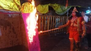 रामलीला के मंचन में सबसे अधिक रोमांचित करने वाला दृश्य तब आया जब हनुमान जी ने रावण की सोने की लंका को जलाया। यह दृश्य देखते ही श्रद्धालु भक्त भाव में सराबोर हो गए और पूरा मैदान गूंज उठा। रावण के अभिमान को चूर करते इस दृश्य ने लोगों के मन में भक्ति और साहस का नया संचार किया।