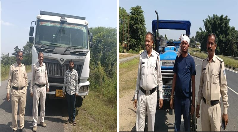 रेत, गिट्टी, डस्ट के अवैध परिवहन में संलिप्त 1 डंपर और 4 ट्रेक्टर-ट्राली जप्त