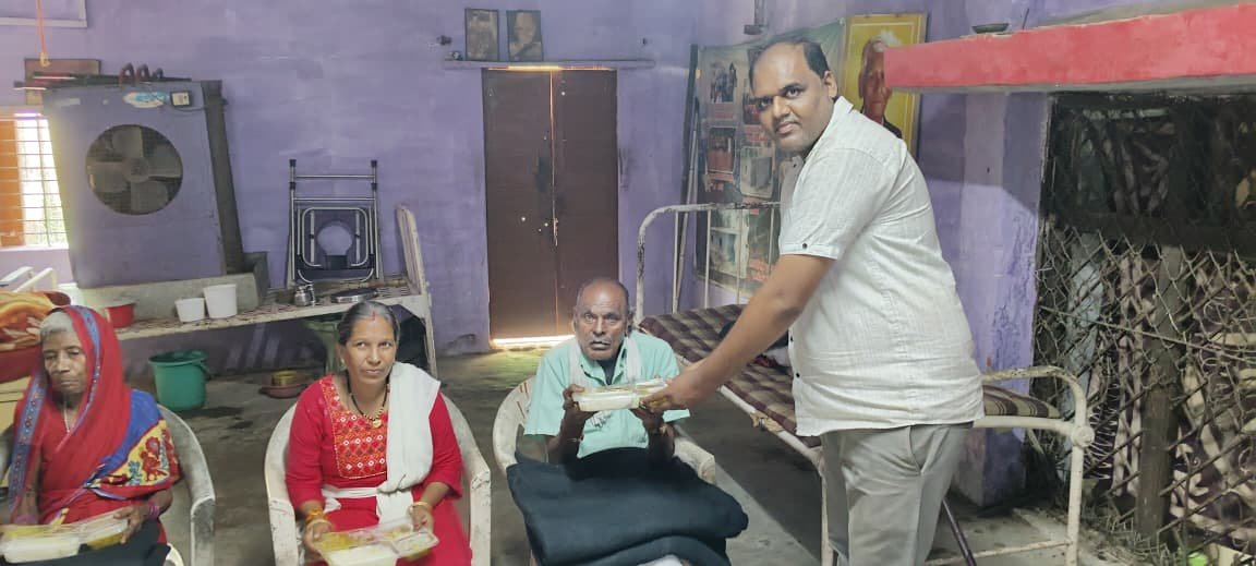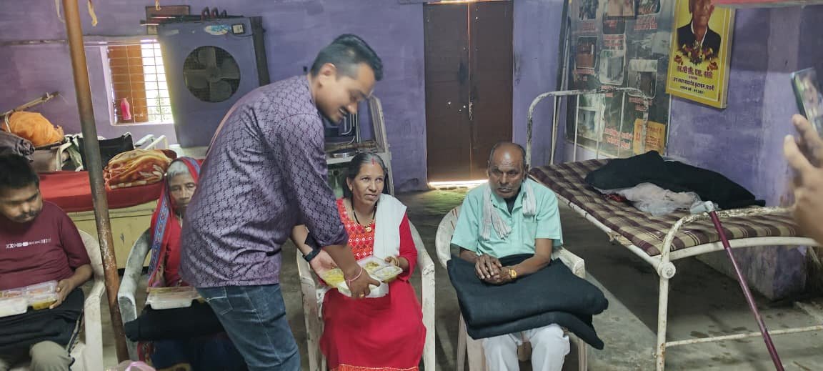 बाबा मठारदेव वृद्ध आश्रम में बुजुर्गों को भोजन कराकर वस्त्र दान किया गया