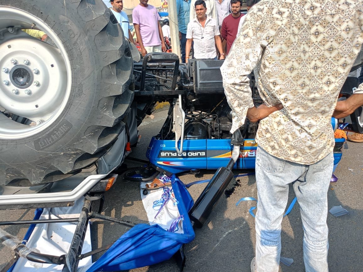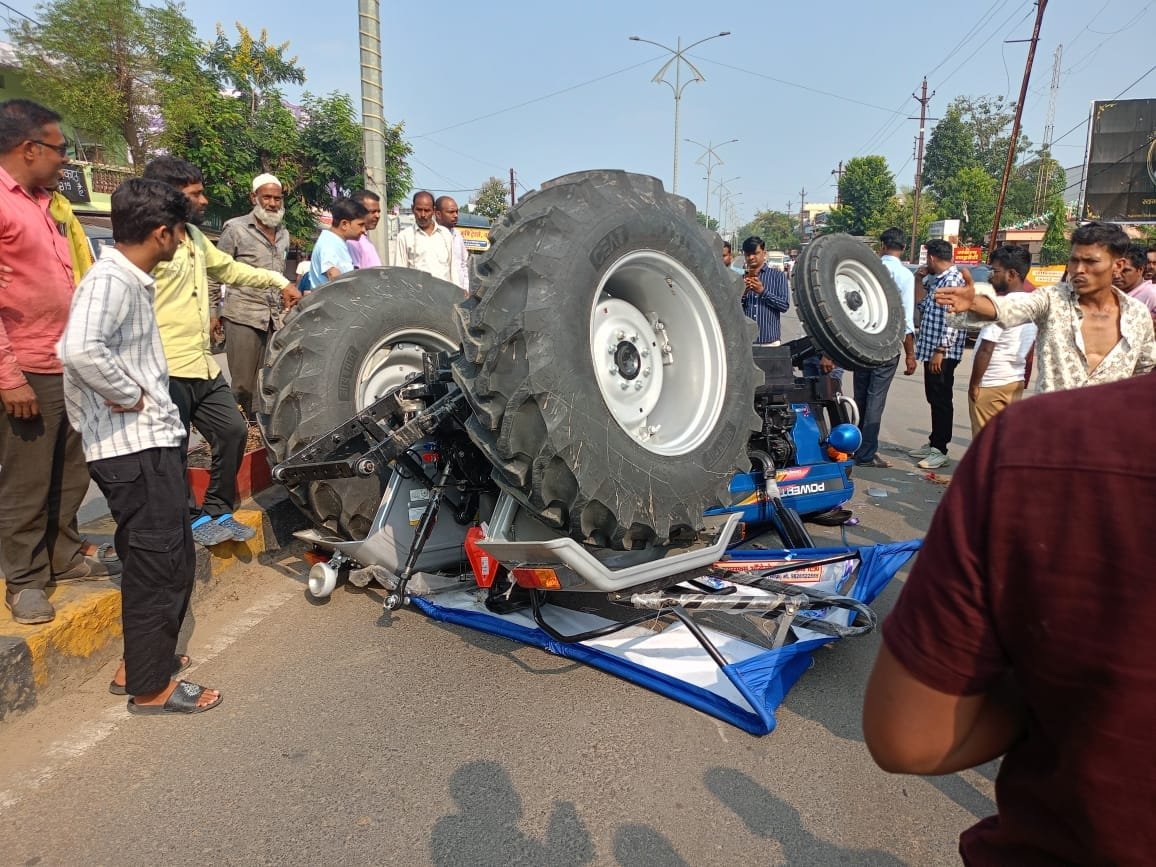 स्टेट हाइवे पर सरपट दौड़ता ट्रैक्टर औंधे मुंह पलटा, दो घायल