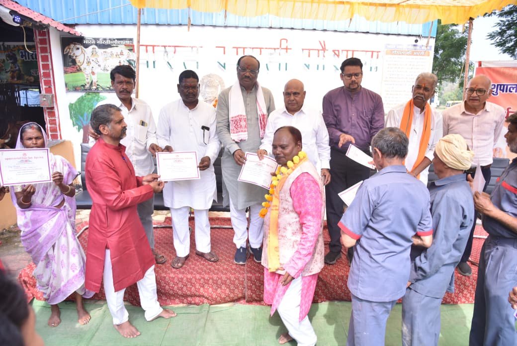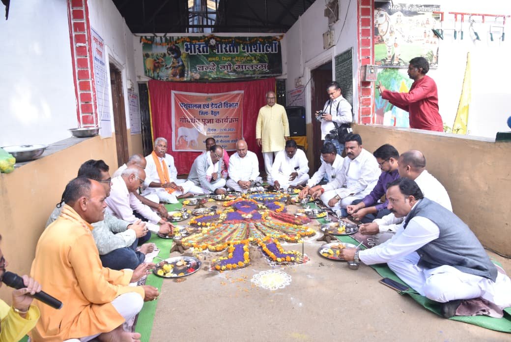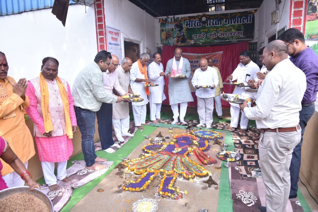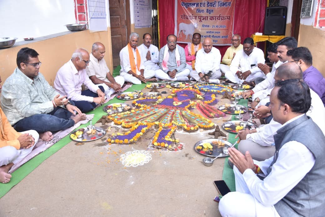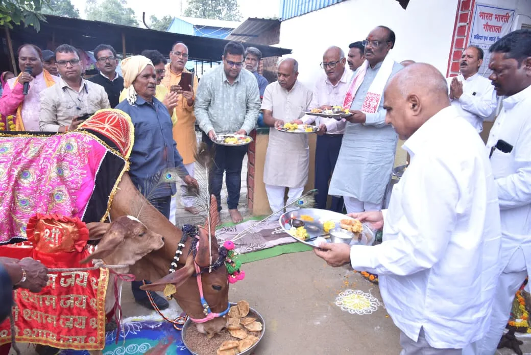 केंद्रीय राज्यमंत्री जनजातीय मामले श्री दुर्गादास उईके और भाजपा प्रदेश अध्यक्ष विधायक श्री हेमंत खंडेलवाल ने मंगलवार को भारत भारती गौशाला में गोवर्धन भगवान का विधिवत पूजन अर्चन कर आरती की। उन्होंने गोमाता की भी पूजन अर्चन कर उन्हें गोग्रास अर्पण किया। इस अवसर पर उपाध्यक्ष जिला पंचायत श्री हंसराज धुर्वे, सरपंच श्री पूर्णराम वाडीवा, सचिव श्री मुकेश खंडेलवाल, प्राचार्य श्री विवेक तिवारी, श्री दीपेश मेहता, श्री अमोल पालकर, उप संचालक पशुपालन एवं डेयरी विभाग श्री सुरजीत सिंह, अनुविभागीय अधिकारी राजस्व बैतूल डॉ अभिजीत सिंह सहित अन्य जनप्रतिनिधि और अधिकारीगण मौजूद रहें। अतिथियों ने कार्यक्रम में गौसेवा के उल्लेखनीय कार्य के लिए गो सेवकों को प्रशस्ति प्रमाण पत्र भी वितरण किया।
