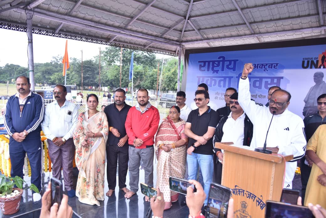 उन्होंने कहा कि हम सबके संगठित प्रयासों से वर्ष 2047 तक भारत को दुनिया का सर्वश्रेष्ठ राष्ट्र बनाना है, यही प्रेरणा हमें सरदार पटेल के आदर्शों और आज के इस एकता दिवस से प्राप्त होती है। यह एकता दौड़ पुलिस परेड ग्राउंड से प्रारंभ होकर कारगिल चौक, जिला अस्पताल, कोठीबाजार पेट्रोल पंप, शिवाजी चौक होते हुए पुनः पुलिस ग्राउंड पर संपन्न हुई। दौड़ में बड़ी संख्या में स्कूली विद्यार्थी, जनप्रतिनिधि, अधिकारी, कर्मचारी और गणमान्य नागरिकों ने उत्साहपूर्वक भाग लिया।