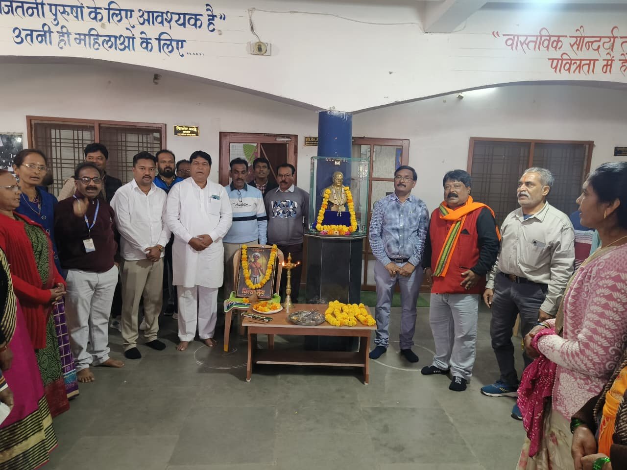 सारनी। नगर पालिका परिषद सारनी में शनिवार 15 नवंबर को आदिवासी जननायक धरती आबा भगवान बिरसा मुंडा की 150वीं जयंती के मौके पर कार्यक्रम का आयोजन किया गया। इस अवसर पर नगर पालिका अध्यक्ष किशोर बरदे व अन्य जनप्रतिनिधियों ने धरती आबा बिरसा मुंडा की प्रतिमा का पूजन कर पुष्प अर्पित किए। इसके बाद प्रधानमंत्री नरेंद्र मोदी एवं मुख्यमंत्री डॉ. मोहन यादव के कार्यक्रमों का सीधा प्रसारण किया गया।