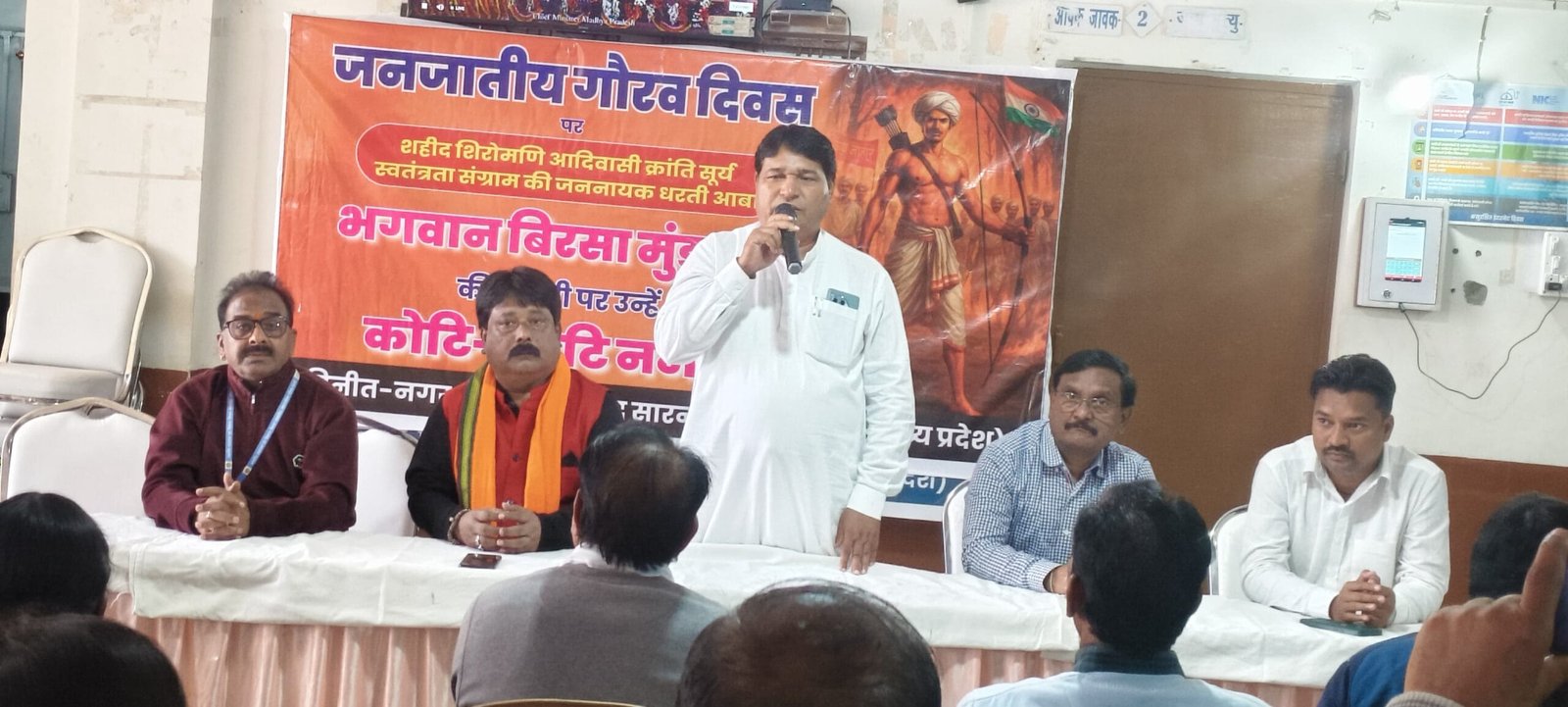 नगर पालिका में कार्यक्रम की शुरूआत सुबह 10 बजे हुई। इस अवसर पर नगर पालिका में उपस्थित जन समुदाय को आदिवासी जननायक धरती आबा बिरसा मुंडा की जीवनी पर आधारित लघु फिल्म दिखाई गई। इसके बाद मुख्यमंत्री डॉ. मोहन यादव के कार्यक्रम का सीधा प्रसारण किया गया। कार्यक्रम के दौरान नगर पालिका अध्यक्ष किशोर बरदे, विधायक प्रतिनिधि सुधा चंद्रा, गोलू राजपूत, मुख्य नगर पालिका अधिकारी सी. के. मेश्राम, सहायक लेखाधिकारी ब्रजेश नागर, उपयंत्री रविंद्र वराठे, कमलेश पटेल, स्वच्छता निरीक्षक केके भावसार के अलावा अन्य अधिकारी कर्मचारियों ने जननायक बिरसा मुंडा का पूजन किया। इसके बाद नगर पालिका अध्यक्ष किशोर बरदे ने कार्यक्रम को संबोधित करते हुए कहा कि जन नायक धरती आबा बिरसा मुंडा ने अंग्रेजों के अत्याचार से बचाया।