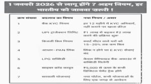 1 जनवरी 2026 से ये 7 अहम नियम लागू हों जायेगे। जिन्हे आपको जानना ज़रूरी होगा। नया नियम इस प्रकार होगा।