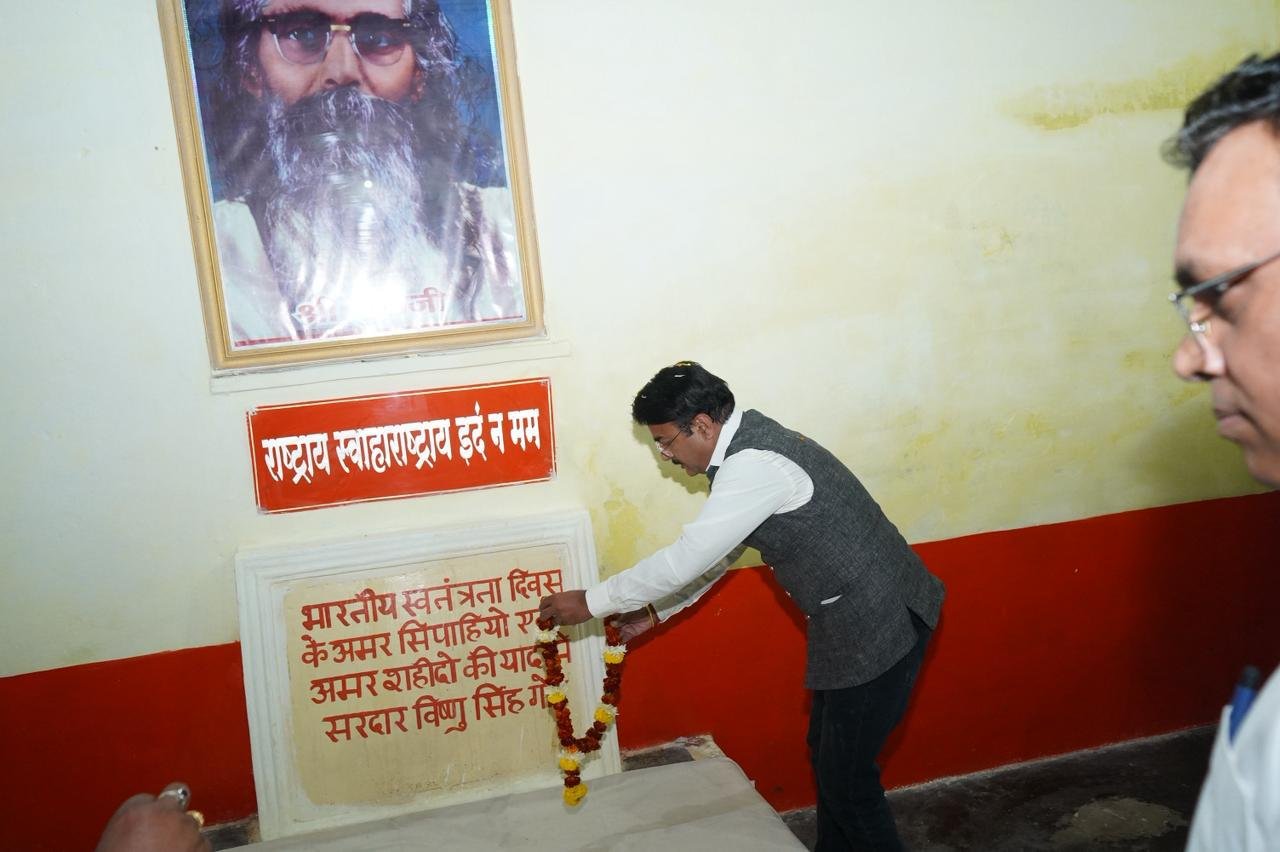 लोक स्वास्थ्य एवं चिकित्सा शिक्षा राज्यमंत्री तथा जिले के प्रभारी मंत्री श्री नरेन्द्र शिवाजी पटेल ने गुरुवार को जिला जेल बैतूल का भ्रमण किया। उन्होंने यहां बैरिक क्रमांक-01 में श्री गुरु जी (माधव सदाशिव गोलवलकर) जी तथा जनजातीय नायक वीर सरदार विष्णु सिंह गोंड की स्मृति में पुष्पांजलि अर्पित की गई। इस दौरान आमला विधायक डॉ योगेश पंडाग्रे, घोड़ाडोगरी विधायक श्रीमती गंगाबाई उईके, जिला विकास सलाहकार समिति सदस्य श्री सुधाकर पवार द्वारा भी पुष्पांजलि अर्पित की गई।