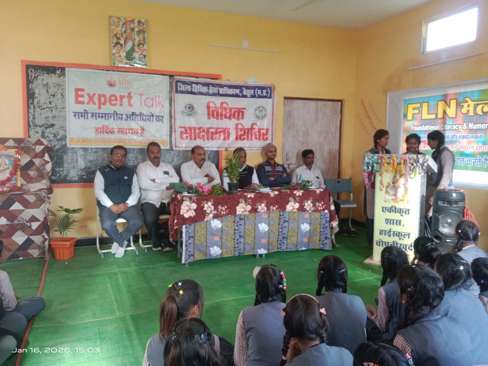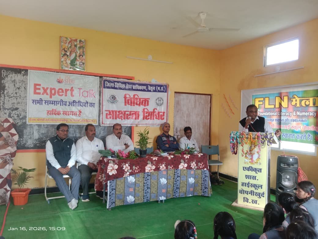 भैंसदेही- विकास खंड के शासकीय पीएम श्री हाई स्कूल चोपनी खुर्द में जिला विधिक सेवा प्राधिकरण के तत्वावधान में विधिक साक्षरता जागरूकता शिविर का आयोजन किया गयाl इस शिविर में अपर जिला एवं सत्र न्यायालय भैंसदेही के अपर जिला एवं सत्र न्यायाधीश श्री विजय चौहान, अधिवक्ता संघ भैंसदेही के पूर्व अध्यक्ष वी.डी. कोसे, अधिवक्ता संघ भैंसदेही के उपाध्यक्ष राजेश गावंडे, विकास खंड अकादमिक समन्वयक श्रीराम भुस्कुटे , समाजसेवी राम सिंह सुजाने प्रमुख रूप से उपस्थित थे l शिविर का शुभारंभ अतिथि गणों द्वारा मां सरस्वती के छायाचित्र के सम्मुख दीप प्रज्वलित कर माल्यार्पण से किया l
