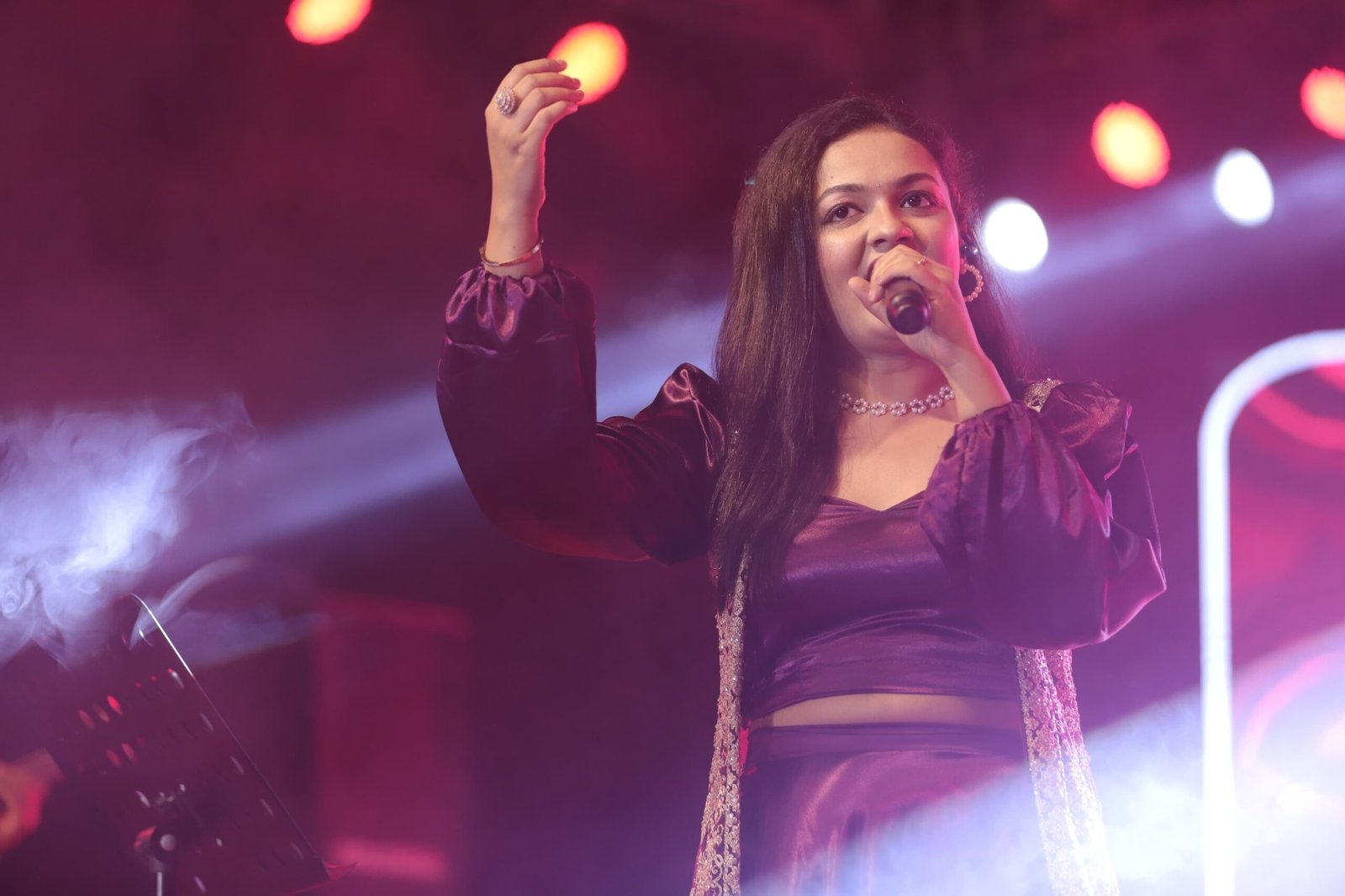 मयूरी साहा ने सत्यम शिवम् सुंदरम …. से कार्यक्रम की शुरूआत की। इसके बाद हम तुम कितने पास हैं कितने दूर… लग जा गले.. ओ सजना बरखा बहार… जिया जले जा जले नैनों तले… सांवरे-सांवरे… दो लब्जो की है… न ना रे नाना रे… पिया बावरे… दीवानी मैं तेरी दीवानी… ढोल बाजे.. जैसे एक से बढ़कर एक गीत सुनाए। इसके बाद उन्होंने लोगों की फरमाईश पर ये मेरा दिल यार का दीवाना… दम मारो दम… और मेरा पिया घर आया ओ राम जी… जैसे गीत सुनाकर लोगों को खूब डांस कराया। मयूरी के दिल दीवाना बिन सजना के माने ना… को लोगों ने खूब सराहा। उन्होंने अयिगिरी नंदिनी… की जोरदार प्रस्तुति दी। बेहतरीन बैंड ने भी लोगों का मन मोहा।
