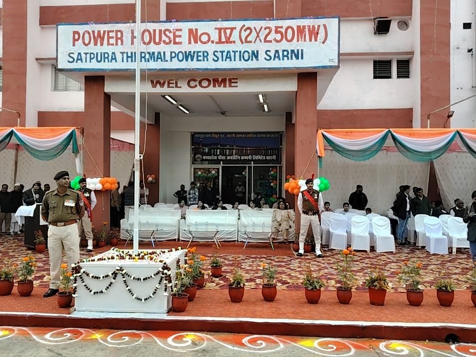सारनी। सतपुड़ा ताप विद्युत गृह में देश का 77वाँ गणतंत्र दिवस हर्षोल्लास, राष्ट्रभक्ति एवं गरिमामय वातावरण में मनाया गया। इस अवसर पर विद्युत गृह परिसर एवं खेल मैदान में विविध कार्यक्रमों का आयोजन किया गया, जिसमें अधिकारियों, कार्मिकों, संविदा कार्मिकों, विद्यार्थियों एवं उनके परिजनों की उत्साहपूर्ण सहभागिता रही।