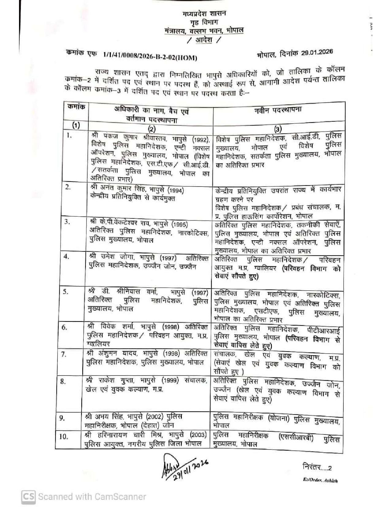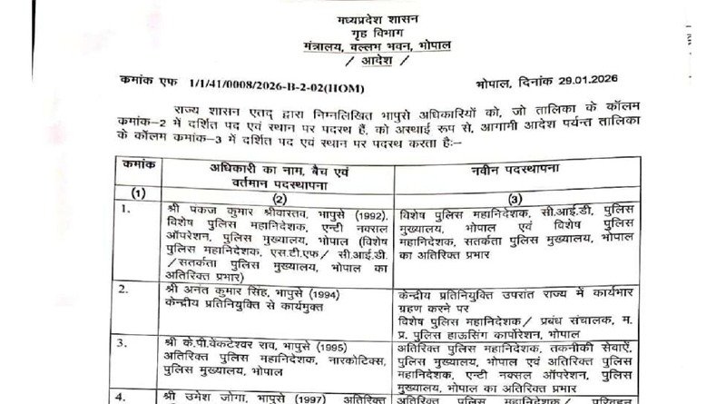 Bhopal भारतीय पुलिस सेवा के अधिकारियों की नवीन पदस्थापना scnnewsindia.com January 29, 2026 Scn News India ब्यूरो रिपोर्ट भारतीय पुलिस सेवा के अधिकारियों की नवीन पदस्थापना Post navigation Previous: ब्राह्मण सुधारकों द्वारा दलित उत्थान: एक ऐतिहासिक परिप्रेक्ष्यNext: UGC के नए नियम पर सुप्रीम कोर्ट ने रोक Related News Bhopal मुख्यमंत्री डॉ. यादव आज 1.17 लाख किसानों के खातों में अंतरित करेंगे 200 करोड़ रूपये की भावांतर राशि scnnewsindia.com January 29, 2026 Bhopal उप पुलिस अधीक्षको के तबादले scnnewsindia.com January 27, 2026 Bhopal मंत्रि-परिषद की बैठक – कई महत्वपूर्ण फैसले scnnewsindia.com January 27, 2026