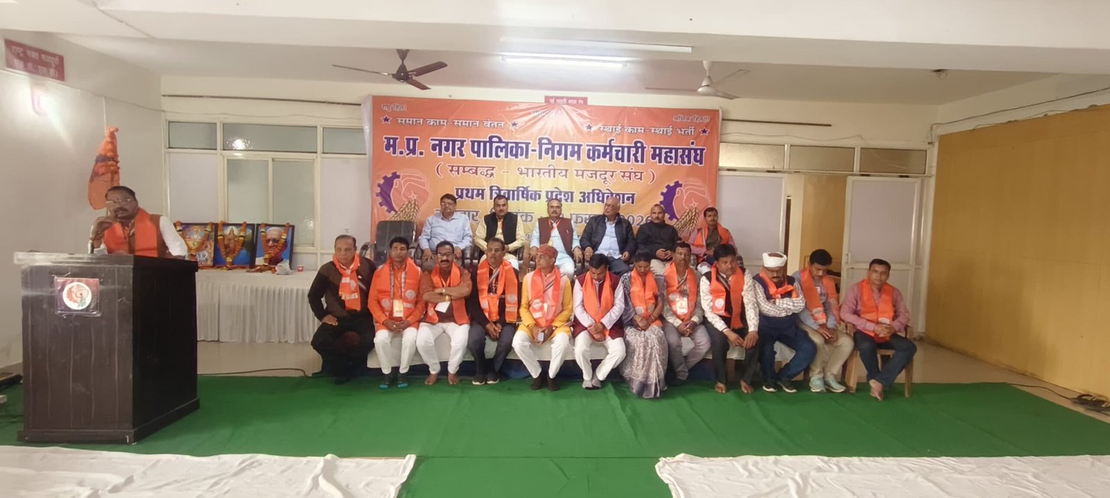 मध्य प्रदेश नगर पालिका निगम कर्मचारी महासंघ संबंध भारतीय मजदूर संघ की प्रथम त्रिवार्षिक अधिवेशन प्रदेश कार्यालय ठेंगड़ी भवन भोपाल में सम्पन्न हुई . जिसमें मध्य प्रदेश के कई जिलों के प्रतिनिधि शामिल हुए, स्वायत्तशासी कर्मचारी महासंघ देश के नगरीय निकायों में कार्य करने वाला सबसे बड़ा संगठन है।