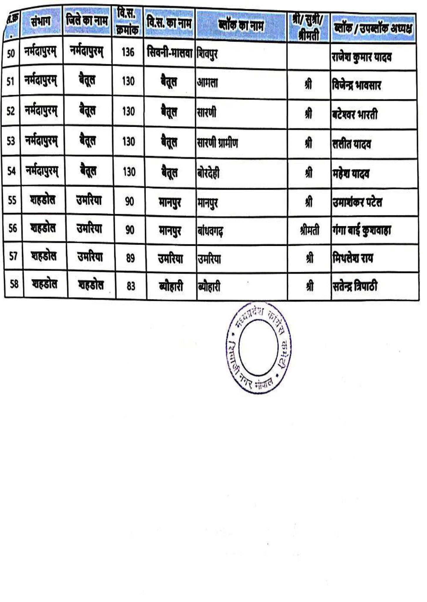 Bhopal कांग्रेस ने की 58 ब्लॉक के अध्यक्षों की घोषणा scnnewsindia.com February 10, 2026 Scn News India ब्यूरो रिपोर्ट प्रदेश कांग्रेस प्रभारी हरीश चौधरी के अनुमोदन उपरांत प्रदेश कांग्रेस अध्यक्ष जीतू पटवारी द्वारा जिलों के अंतर्गत नवीन ब्लॉक कांग्रेस अध्यक्षों की नियुक्ति की गई है। Post navigation Previous: पार्ट टाइम डिप्लोमा कोर्स प्रारंभ, विद्युत मंडल कर्मचारी यूनियन ने किया सम्मान समारोहNext: कक्षा 9वीं व 11वीं की पूरक परीक्षा के स्थान पर द्वितीय परीक्षा होगी आयोजित Related News Bhopal कक्षा 9वीं व 11वीं की पूरक परीक्षा के स्थान पर द्वितीय परीक्षा होगी आयोजित scnnewsindia.com February 10, 2026 Bhopal जिला कांग्रेस कमेटियों में जिला संगठन महासचिव नियुक्त scnnewsindia.com February 10, 2026 Bhopal फायर सेफ्टी से संबंधित कार्य को प्राथमिकता से करें पूर्ण: उप मुख्यमंत्री श्री शुक्ल scnnewsindia.com February 9, 2026