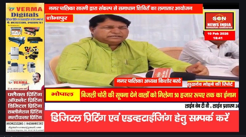 सारनी। संकल्प से समाधान अभियान के तहत मंगलवार 10 फरवरी को वार्ड 30 एवं वार्ड 31 में शिविर का आयोजन किया गया। इसमें विभिन्न योजनाओं के कई आवेदन आए। मध्यप्रदेश शासन के निर्देशानुसार शासन की विभिन्न जन हितैषी योजनाओं का लाभ आम लोगों को देने के लिए 12 जनवरी से 15 फरवरी तक संकल्प से समाधान अभियान का आयोजन किया जा रहा है। अभियान के तहत मंगलवार को वार्ड 30 एवं वार्ड 31 में शिविर का आयोजन किया गया। इस दौरान लोगों को केंद्र व राज्य सरकार की विभिन्न जनहितैषी योजनाओं की जानकारी दी गई।