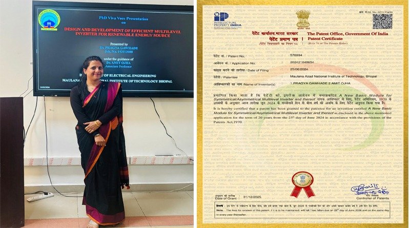 इस पीएचडी के दौरान डॉ. प्रज्ञा गव्हाड़े ने… (i) 3 SCIE-indexed journal papers (ii) 5 Scopus-indexed conference papers (iii) 1 book chapter प्रकाशन और विशेषकर (iv) 1 Patent granted on “A new basic module for symmetrical and asymmetrical multilevel inverter” from Indian patent office द्वारा भी हमें गौरवान्वित किया है।