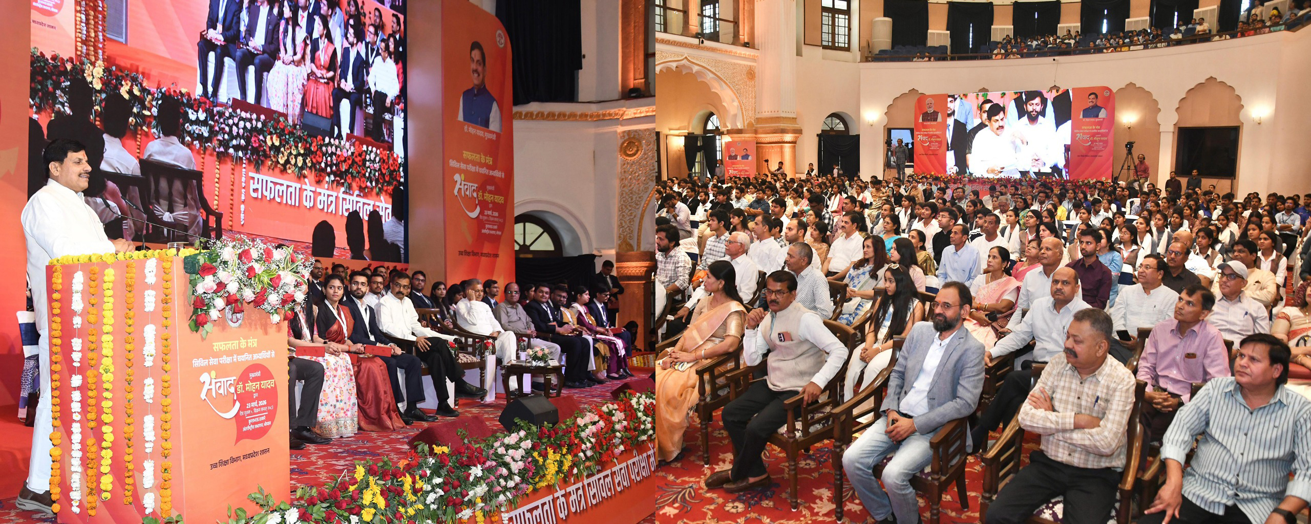 इस अवसर पर अखिल भारतीय स्तर पर 5वीं रैंक प्राप्त श्री ईशान भटनागर और 260वीं रैंक प्राप्त सुश्री प्राची चौहान ने अपने अनुभव साझा किए। श्री भटनागर ने बताया कि गवर्नेंस संवैधानिक मूल्यों को धरातल पर लाने का सही तरीका होता है, यही मेरी प्रेरणा रही। उन्होंने कहा कि प्रशासन के माध्यम से जमीनी स्तर पर काम करते हुए संविधान की मूल भावना के अनुरूप लोगों को न्याय दिलाया जा सकता है। ये सेवा आम आदमी के जीवन में वास्तविक परिवर्तन लाने का प्रभावी माध्यम हो सकती है। सुश्री प्राची चौहान ने कहा कि धैर्य और ईमानदारी से किया गया प्रयास कभी व्यर्थ नहीं जाता। मुख्यमंत्री डॉ. यादव के नेतृत्व ने प्रदेश की बेटियों को संबल प्रदान किया है। आज यूपीएससी परीक्षा में चयनित होकर गांव के एक किसान की बेटी इस मंच से संबोधित कर रही है। यह बदलते मध्यप्रदेश का जीवंत प्रमाण है। मुख्यमंत्री डॉ. यादव ने विभिन्न चयनित अभ्यर्थियों से संवाद भी किया।