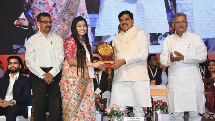 मुख्यमंत्री डॉ. यादव ने दीप प्रज्वलित कर कार्यक्रम का शुभारंभ किया। मुख्यमंत्री डॉ. यादव ने चयनित अभ्यर्थियों पर केंद्रित “मध्यप्रदेश की प्रतिभाओं का परचम” पुस्तिका के डिजिटल वर्जन का रिमोट के माध्यम से लोकार्पण किया। चयनित अभ्यर्थियों पर केंद्रित लघु फिल्म का इस अवसर पर प्रदर्शन भी किया गया। मुख्यमंत्री डॉ. यादव ने चयनित अभ्यर्थियों को ट्रॉफी भेंट कर उनका सम्मान किया।