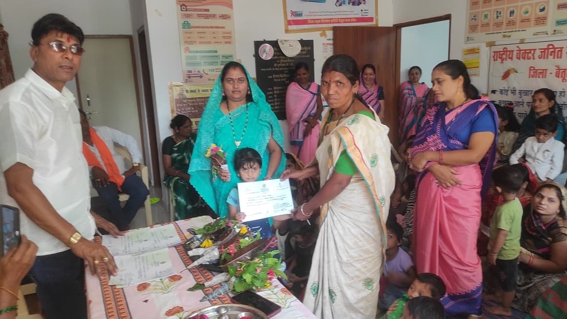 कार्यक्रम को संबोधित करते हुए सीएचओ सुश्री साक्षी मालवीय ने स्वास्थ्य सेवाओं की विस्तृत जानकारी प्रदान की। अतिथियों द्वारा बच्चों को विद्या आरंभ प्रमाण पत्र वितरित कर उनके उज्जवल भविष्य की मंगल कामना की। आंगनवाड़ी कार्यकर्ता श्रीमती दीपाली साहू ने अतिथियो, पालकों एवं मातृ शक्तियों द्वारा दिए गए अपने अमूल्य समय के लिए उनका आभार जताया। कार्यक्रम को सफल बनाने में आंगनवाड़ी कार्यकर्ता श्रीमती दीपाली साहू, श्रीमती सुनीता चढ़ोकार,सुश्री भाग्यश्री महाले, आंगनवाड़ी सहायिका श्रीमती मंदा पवार,श्रीमती संतोषी बोड़खे एवं श्रीमती इंदु ठाकरे का विशेष योगदान रहा। कार्यक्रम में बड़ी संख्या में मातृ शक्तियां ,पालक एवं बच्चे उपस्थित रहे।