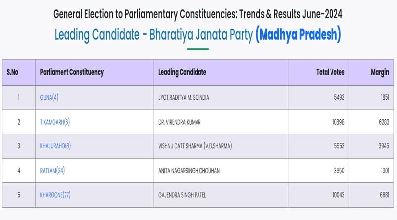 scn news india मध्य प्रदेश से पहले रुझान बीजेपी – 5 , कांग्रेस -1 पर आगे June 4, 2024 scnnewsindia.com Scn News Indiaमध्य प्रदेश से पहले रुझान बीजेपी -5 पर आगेकांग्रेस -1