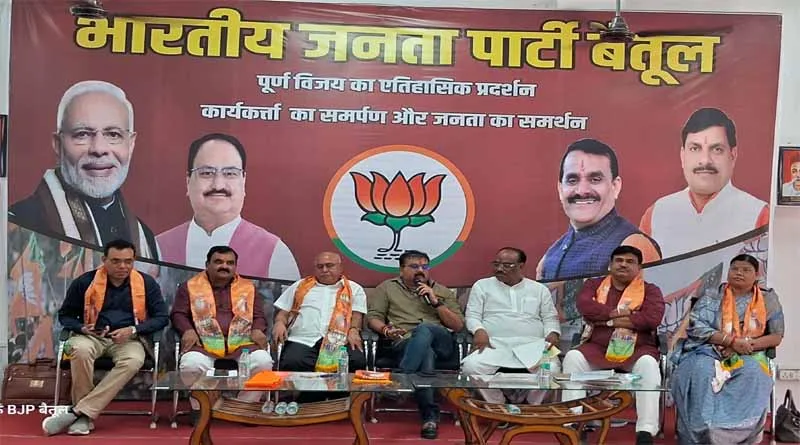 बैतूल । भाजपा जिला कार्यसमिति की बैठक शुक्रवार को जिला भाजपा कार्यालय विजय भवन बैतूल में आयोजित की गई। बैठक के शुभारंभ अवसर पर सर्वप्रथम अतिथियों द्वारा पं. दीनदयाल उपाध्याय, डॉ. श्यामाप्रसाद मुखर्जी एवं भारत माता के चित्र के समक्ष द्वीप प्रज्वलित कर बैठक का शुभारंभ किया गया। कार्यसमिति की प्रस्तावना रखते हुए भाजपा जिलाध्यक्ष आदित्य बबला शुक्ला ने आगामी कार्यक्रमों की जानकारी देते हुए बताया कि भाजपा की ऐतिहासिक विजय के लिए कार्यकर्ताओ का समर्पण और जनता का समर्थन रहा जिसके चलते हमे लोकसभा में प्रदेश में 66 प्रतिशत मत प्राप्त हुए अब कार्यकर्ताओ की जिम्मेदारी जनप्रतिनिधियों के जिम्मे है। प्रदेश संगठन द्वारा 9 जुलाई से आगामी 04 अगस्त तक चलाये जाने वाले कार्यक्रम जिसमे 10 से 15 जुलाई तक मण्डल स्तर की वृहद बैठक, 13 से 20 जुलाई तक शक्तिकेन्द्र सम्मेलन में बूथ नेतृत्व सम्मान समारोह, 21 जुलाई गुरुपूर्णिमा पर्व, 26 जुलाई कारगिल विजय दिवस, मन की बात, एक पेड़ माँ के नाम के तहत जिले में देड लाख से अधिक वृक्षारोपण किया जाएगा ।