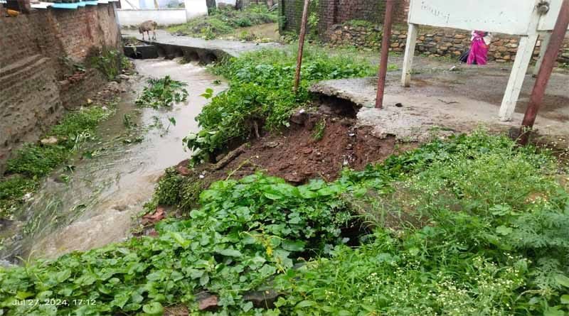 सारणी – नगर पालिका के द्वारा बनाई गई सारणी के वार्ड नंबर 1 के नाले की रिटर्निग वाल पहली बारिश में ही ढह गई। नगर पालिका केद्वारा किये गए घटिया निर्माण की ये कोई पहली घटना नहीं है इस की फेहरिश्त लम्बी है। लेकिन जांच और कारवाही के आभाव में इनकी पुनरावृत्ति की खबरें लगातार सामने आती है। पर जिम्मेदार अक्सर मौन रहते है। और ठेकेदार मलाई छानते है।