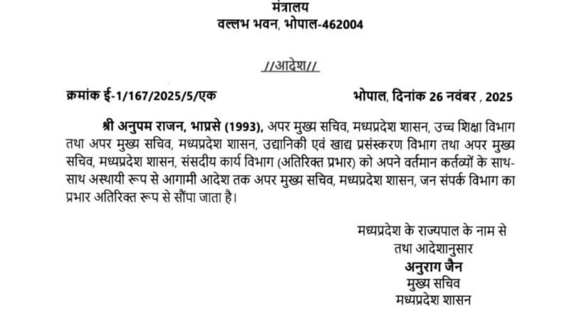 Read Moreब्यूरो रिपोर्ट सामान्य प्रशासन विभाग द्वारा भाप्रसे के अधिकारी श्री अनुपम राजन, अपर मुख्य सचिव (उच्च शिक्षा, उद्यानिकी एवं खाद्य