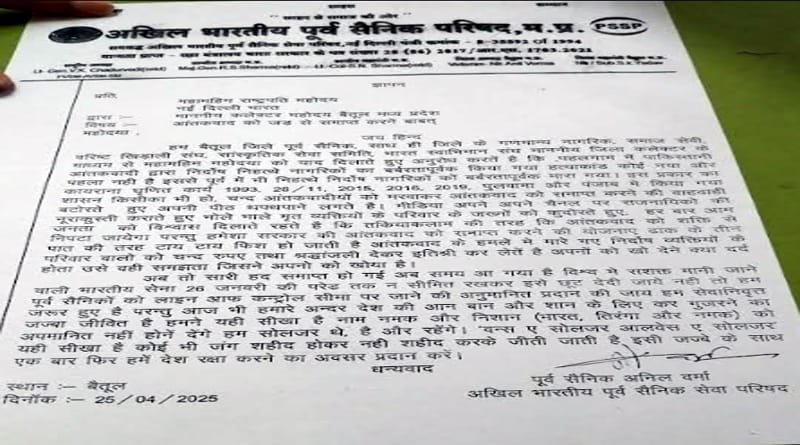 Read Moreब्यूरो रिपोर्ट बैतूल। जम्मू-कश्मीर के पहलगांव में आतंकवादियों द्वारा हिन्दू पर्यटकों की धार्मिक पहचान पूछकर की गई नृशंस हत्या के