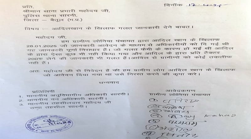 Read Moreभारती भूमरकर ग्राम लोनिया पंचायत के ग्रामीणों ने थाना प्रभारी सारणी एवं एसडीओपी सारणी को आवेदन सौप विगत दिनों पर्यावरण