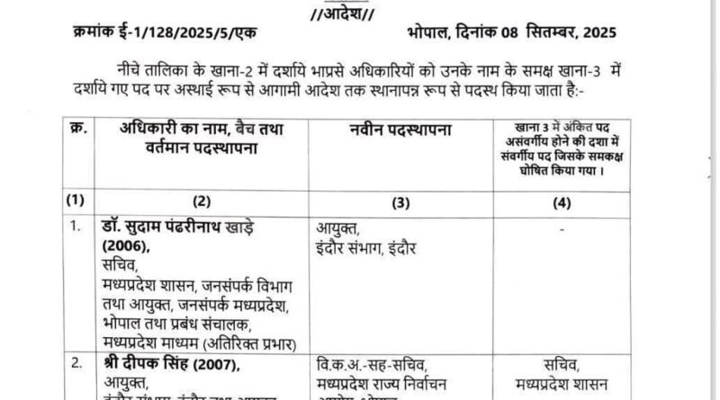 ये ब्यूरो रिपोर्ट आईपीएस IPS अधिकारियों के तबादले